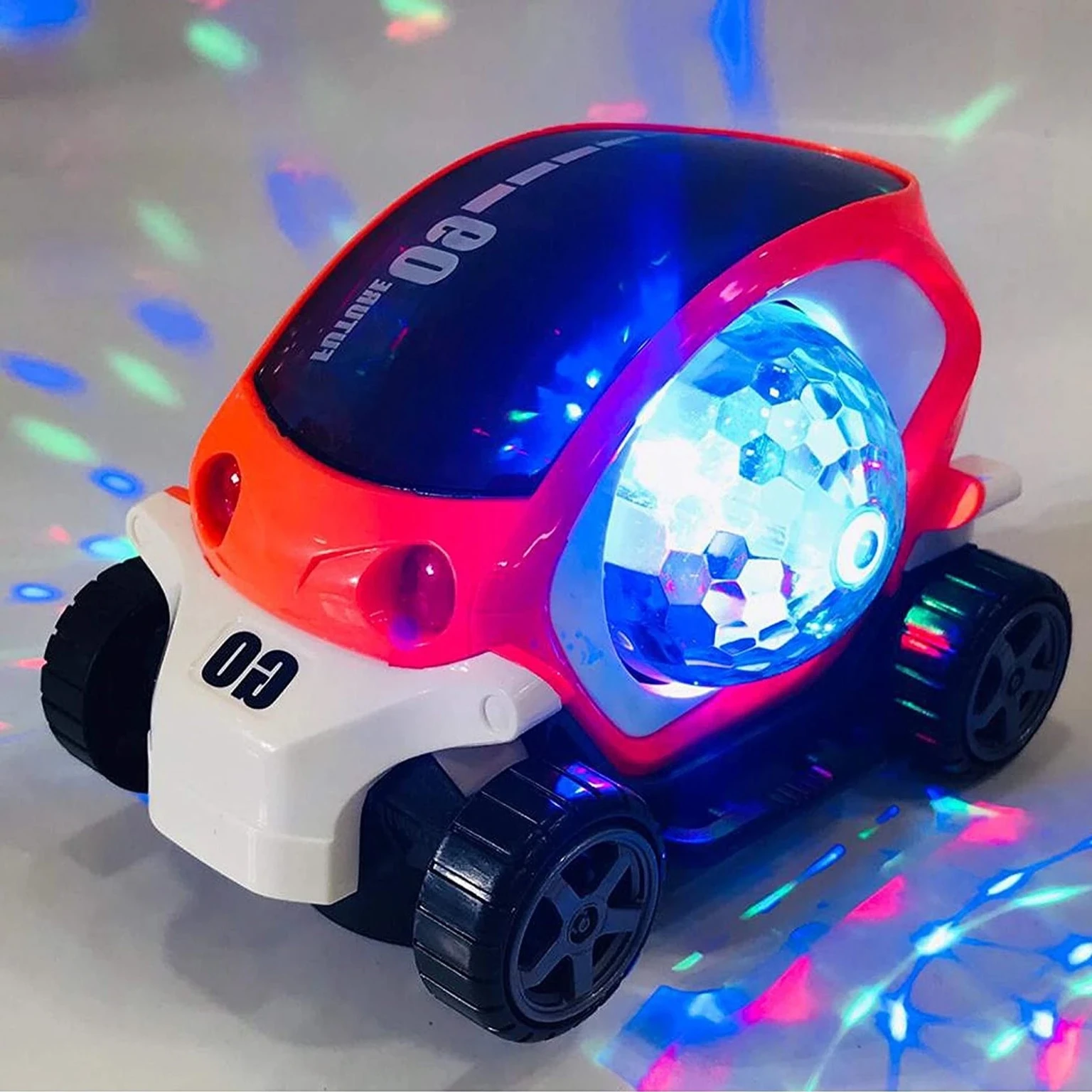 360° Rotation With Laser Flashing Lights and Dynamic Music For Kids. As Shown In Figure On Box. Bicycle requires 3 AA batteries not included. Swing Head during the ride. The rider can be fixed & removed. 3D Lights in wheels as well. Need 3 AA Batteries (Not Included). Perfect Birthday & Return Gift for Kids. Scooter fell down during driving, the little boy automatically stood up as soon as it rotated